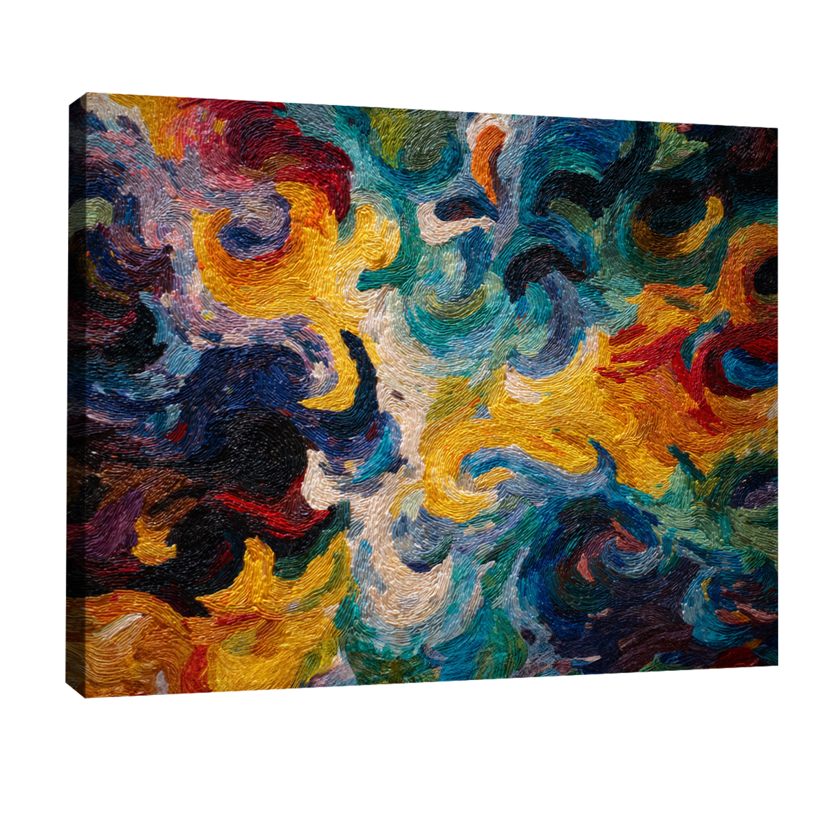 Bring a burst of movement and emotion into your home with Abstract Swirling Color Fine Art Canvas Print Vivid Texture. This artwork features dynamic, layered brushstrokes in vibrant blues, yellows, reds and deep blacks, creating a captivating sense of flow and motion. Its modern fine-art aesthetic instantly energizes any room while remaining elegant and refined.Perfect for living rooms, creative studios, hallways, or contemporary office spaces, this canvas print adds visual rhythm and expressive depth. The swirling textures evoke a feeling of imagination and spontaneity—ideal for those who appreciate bold design without sacrificing sophistication.