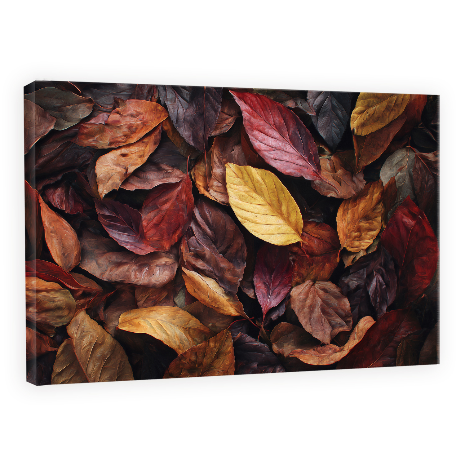 Immerse your space in the richness of fall with the Autumn Forest Fallen Leaves Abstract Oil Painting Canvas Wall Art. This detailed composition blends warm tones of gold, amber, burgundy, and rust to depict a stunning bed of autumn leaves — each leaf swirling with organic texture and vivid depth. The harmonious palette and layered brushwork evoke the quiet poetry of shifting seasons, inviting reflection and a gentle sense of nostalgia. Ideal for modern, rustic, or nature-themed interiors, it brings a sophisticated seasonal accent to living rooms, bedrooms, offices, or entryways.