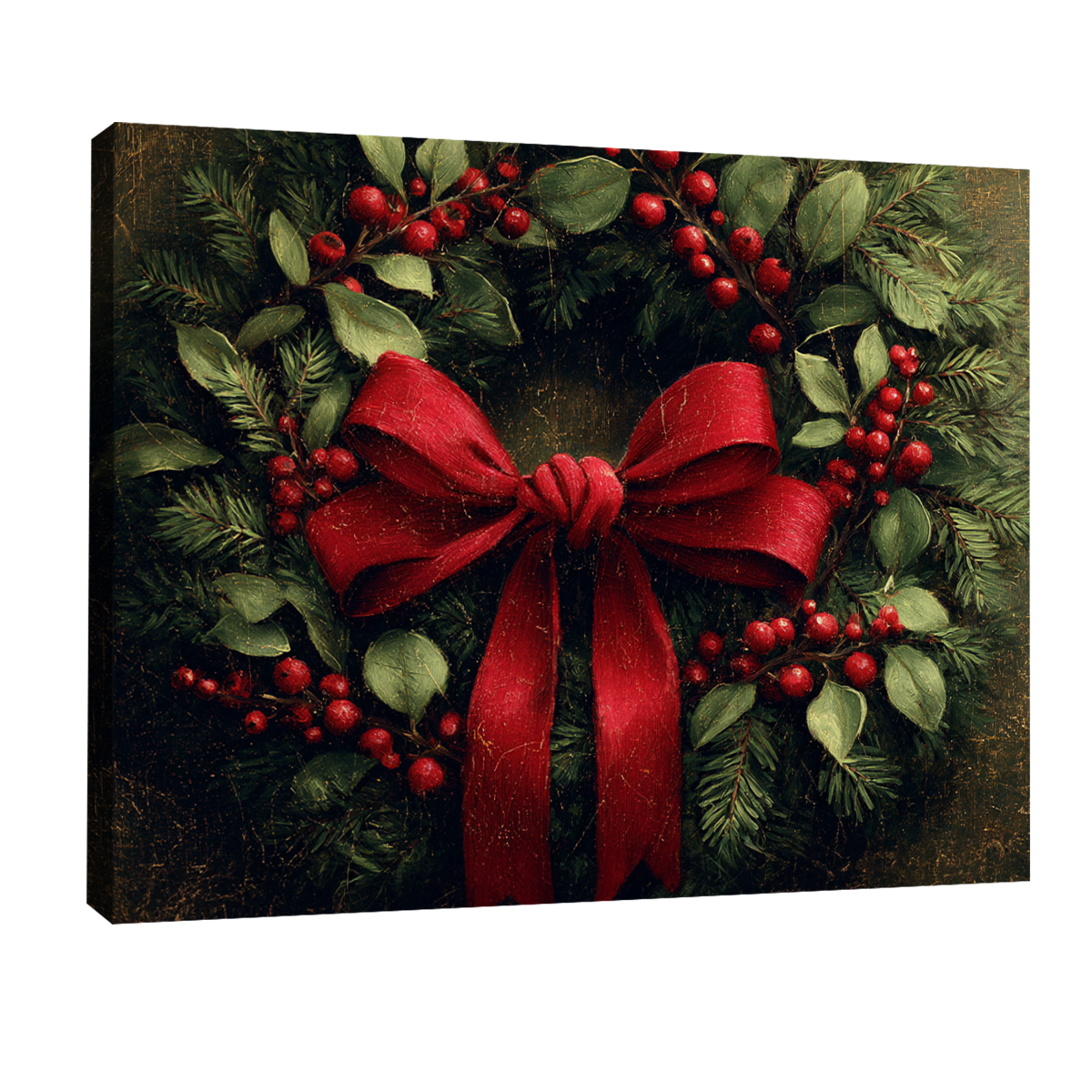 Add a touch of timeless holiday elegance to your home with this beautiful wreath artwork.