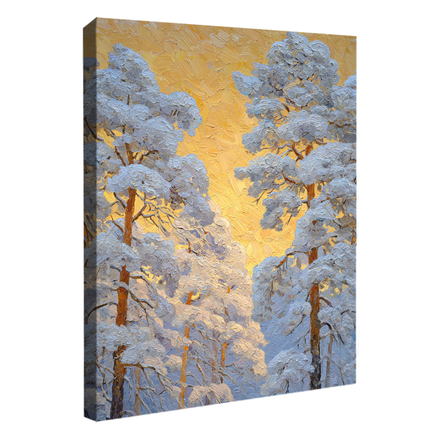 Invite the glow of a winter sunrise into your home with this Snowy Pine Forest Canvas — where light, texture, and nature come together in harmony.