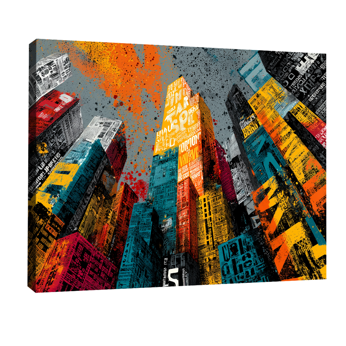Celebrate the pulse of urban creativity with Vibrant Typography Skyline Graffiti Canvas Print, a bold fusion of street art energy and architectural abstraction. Towering city blocks explode in vivid yellows, reds, and blues, layered with chaotic typography and expressive paint splashes. This artwork transforms concrete and chaos into rhythm and design, capturing the heartbeat of the modern metropolis. Perfect for industrial, loft, or eclectic interiors, it brings instant vibrancy and movement to your walls. The detailed texture and dynamic composition make it a striking centerpiece in any contemporary decor.