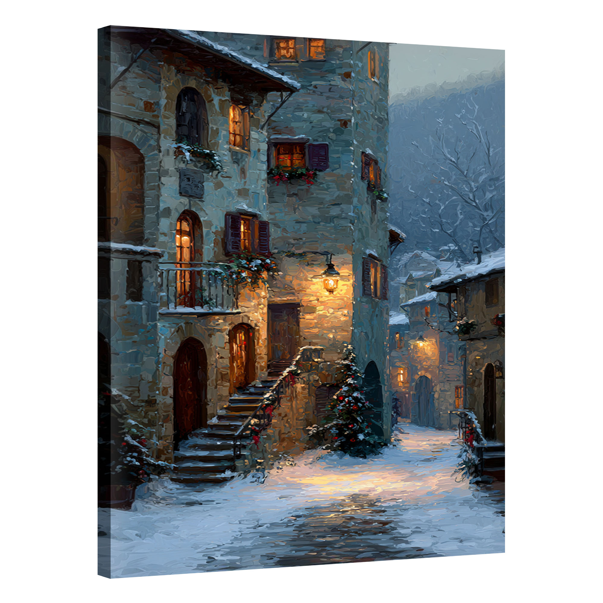 Winter Nightstone Village Landscape Canvas Wall Art Decor
