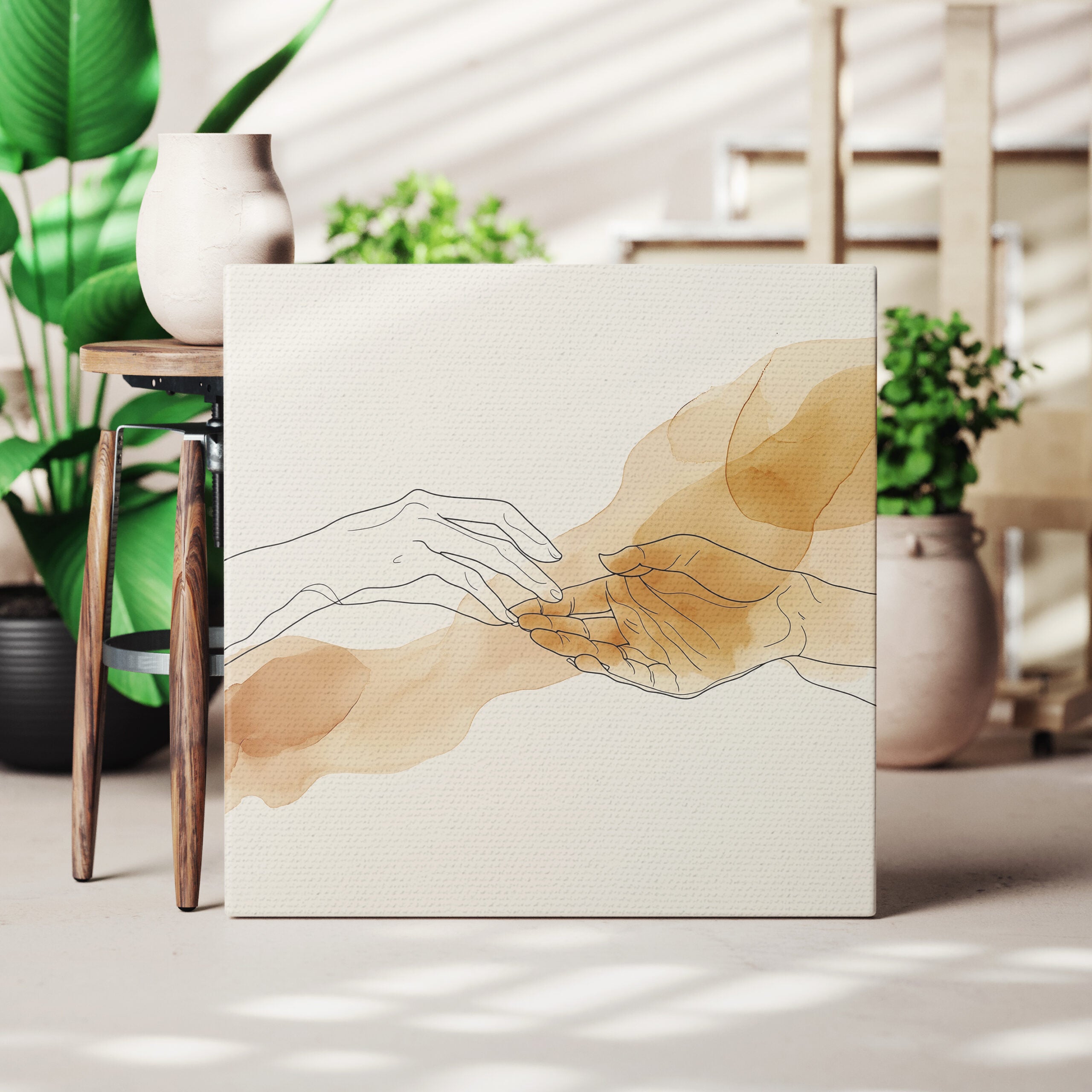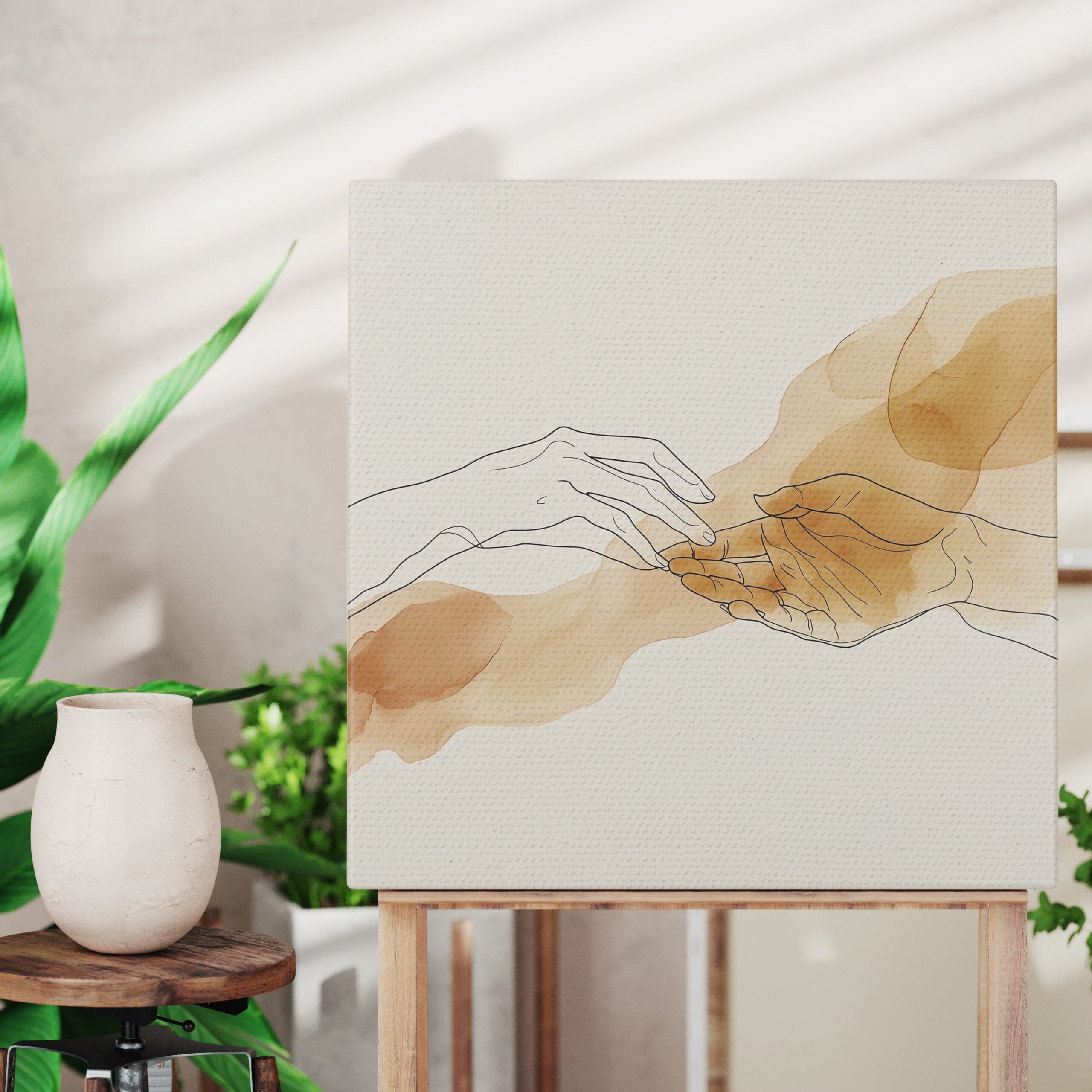 🤲✨ Celebrate the beauty of human connection with the Touch of Connection One-Line Drawing Minimalist Canvas Wall Art. Featuring a single continuous line forming two hands reaching for each other, this artwork evokes deep emotions of love, trust, and unity. The warm, earthy watercolor background adds depth while maintaining a minimalist aesthetic.